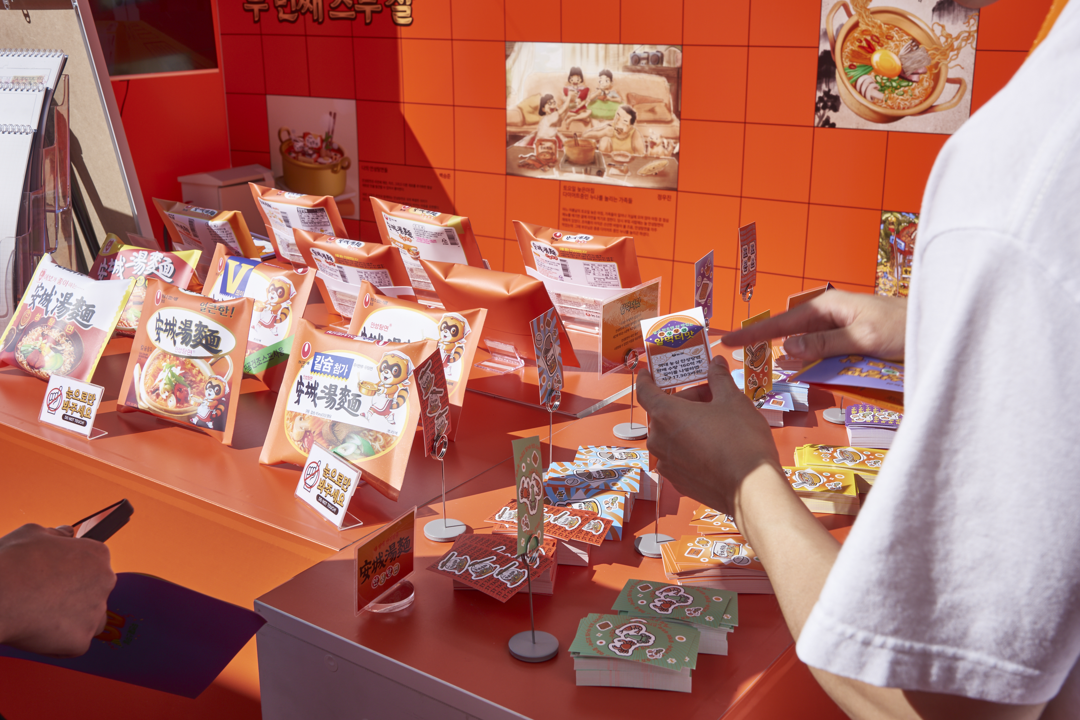 또한 안성탕면 전용서체를 활용하여 여러 신진 아티스트가 제작한 작품을 전시하여 글자가 정보를 전달하는 수단을 넘어 예술로 진화하는 것을 보여주고자 하였죠. 이 밖에도 팝업스토어 현장에서는 안성탕면 모델 강호동의 팬 사인회, 경품을 받을 수 있는 초대형 젓가락질 게임, 포토 부스 등이 운영되어 방문객들의 인기를 끌었습니다.