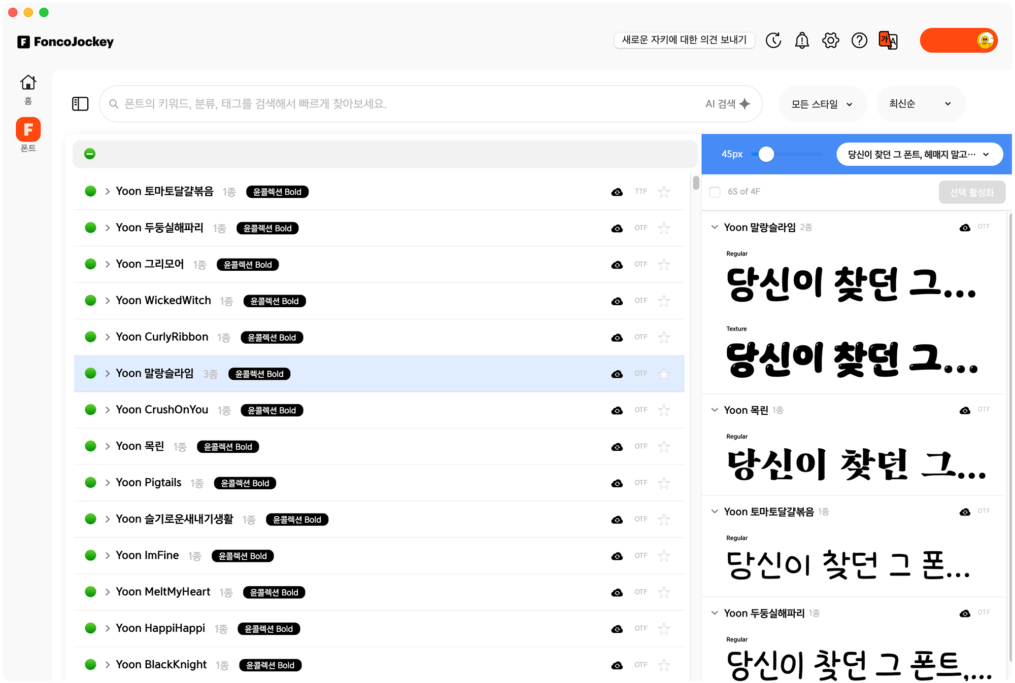 · 폰트는 폰코자키: 라이선스 걱정 없는 무료폰트부터 내가 구매한 폰트까지, 한곳에서 편하게 관리하고 사용하세요.