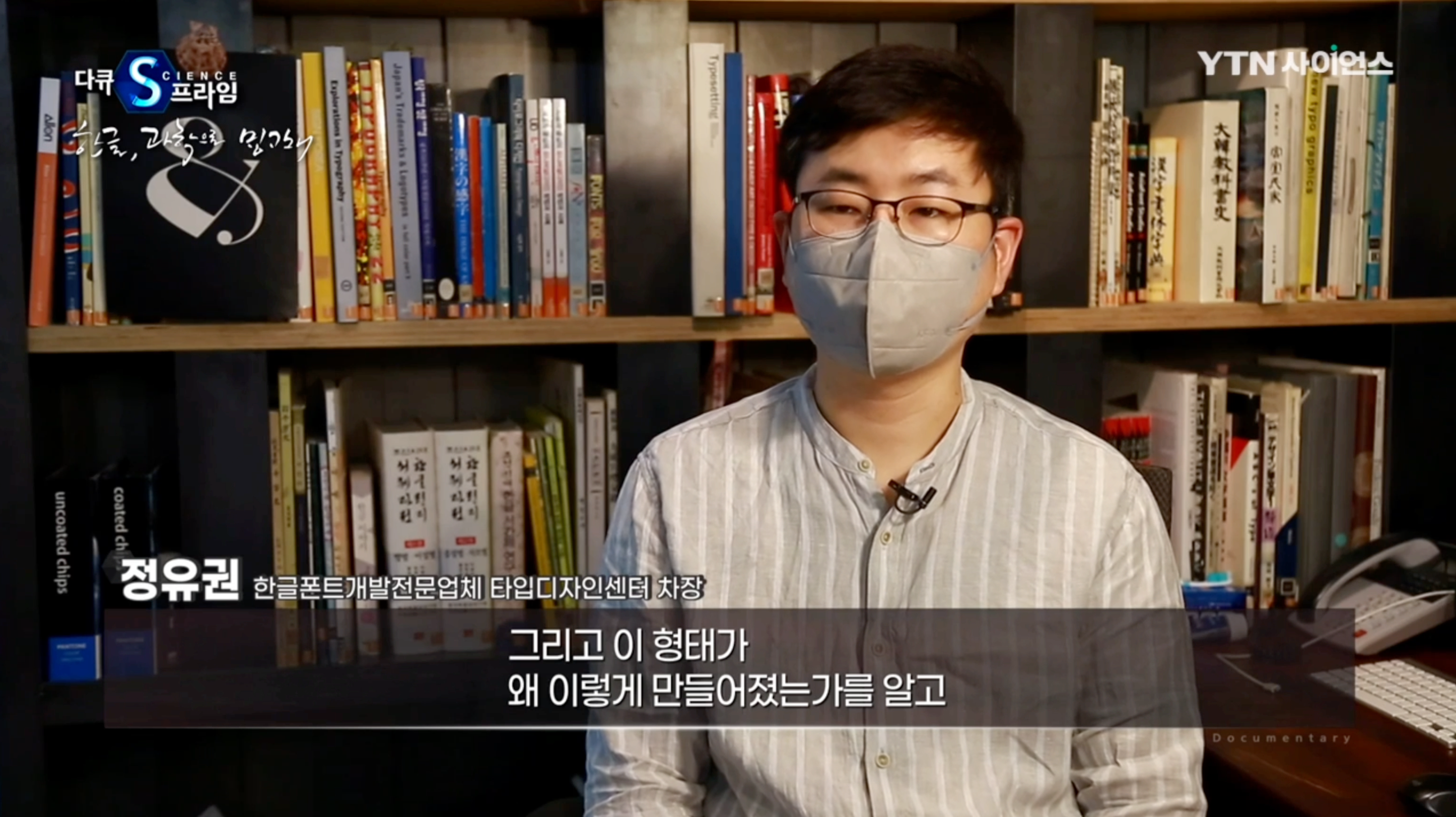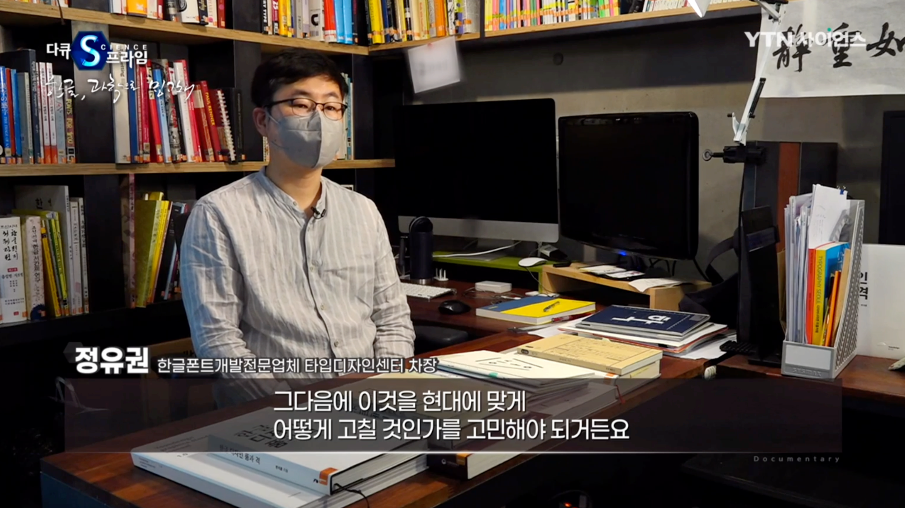 폰트 디자이너 정유권, 〈다큐 프라임 ― 한글, 과학으로 맹가노니〉(2021. 10. 7. 방송) 중