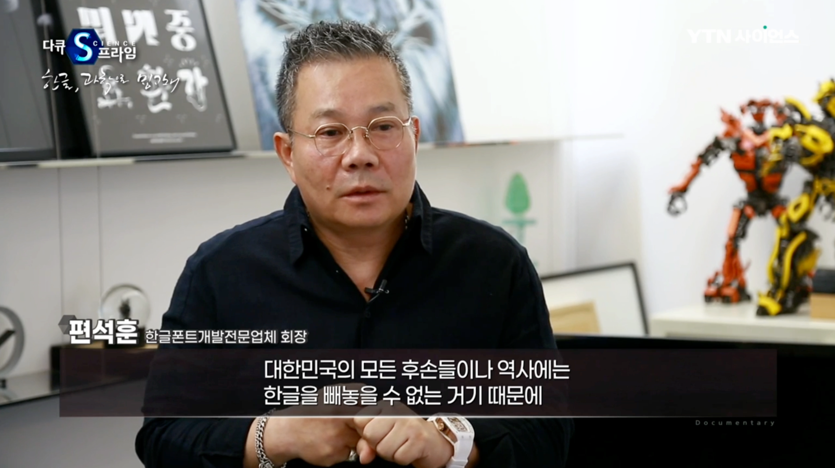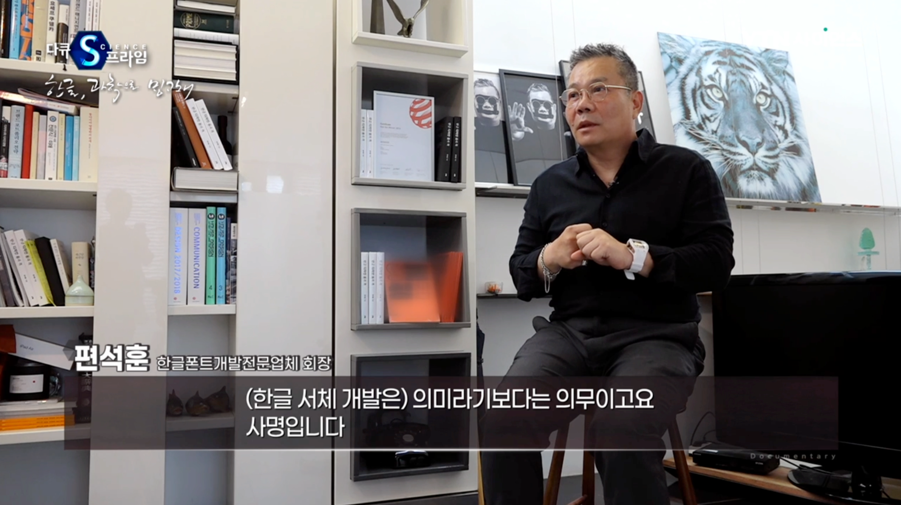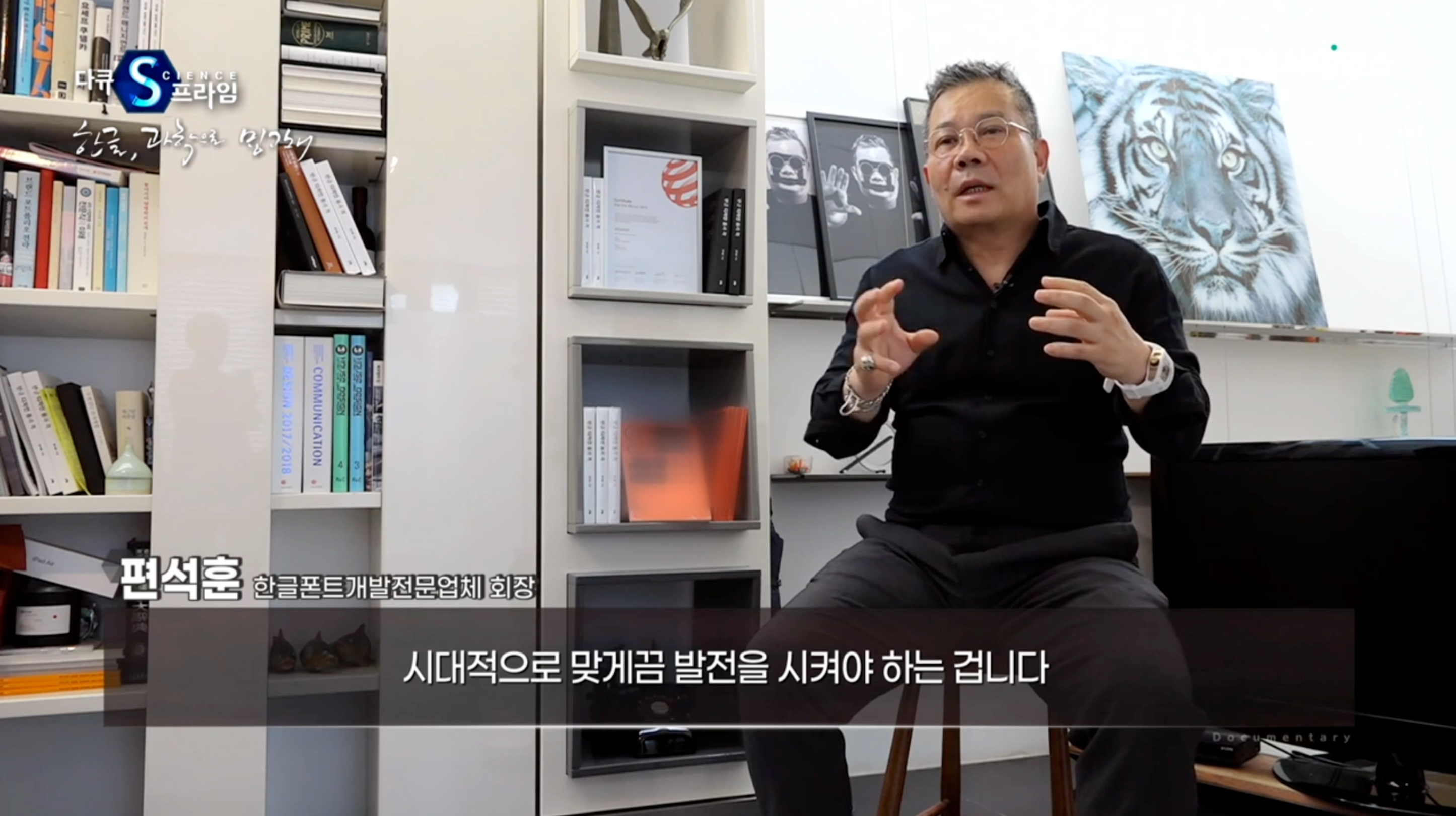 윤디자인그룹 편석훈 회장, 〈다큐 프라임 ― 한글, 과학으로 맹가노니〉(2021. 10. 7. 방송) 중
