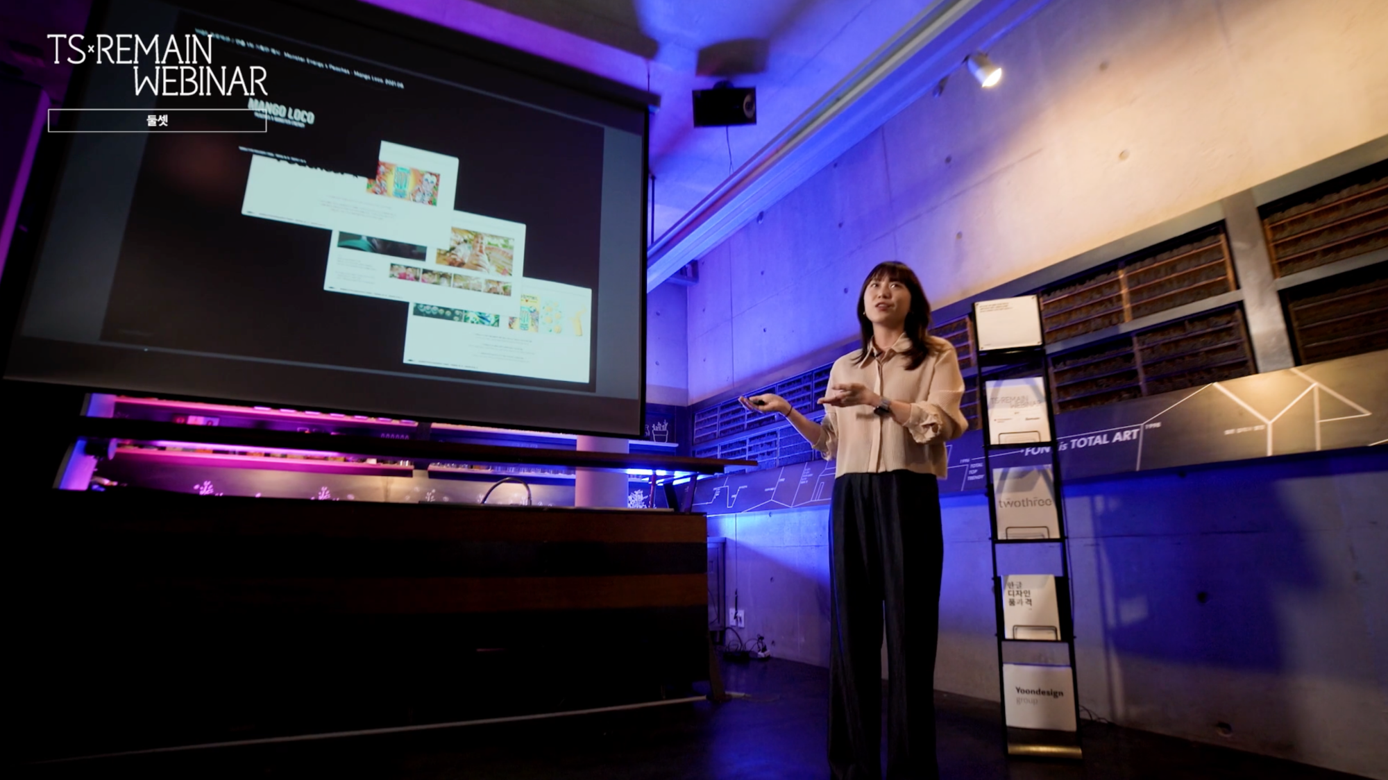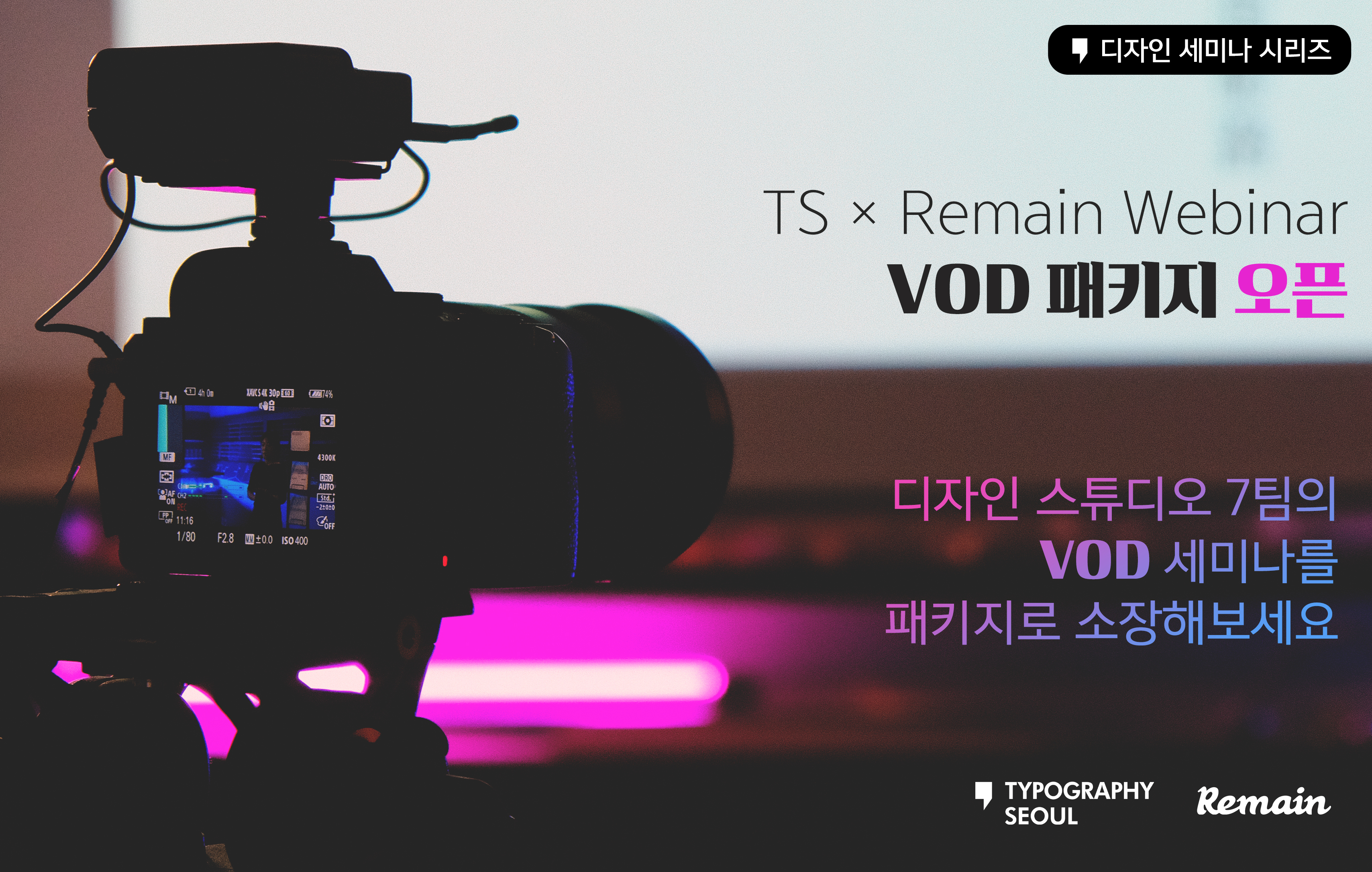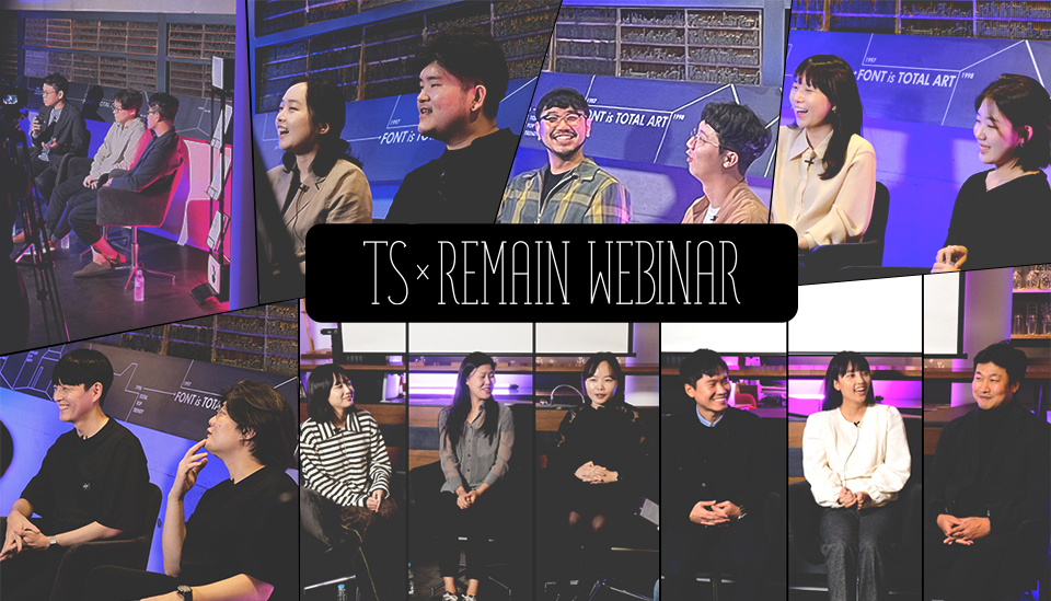 〈TS × Remain Webinar〉는 윤디자인그룹이 운영하는 디자인 웹진 『타이포그래피 서울』이 기획하고, 디자인 교육 콘텐츠 플랫폼 ‘리메인(Remain)’이 공동 제작한 릴레이 세미나 콘텐츠입니다.
